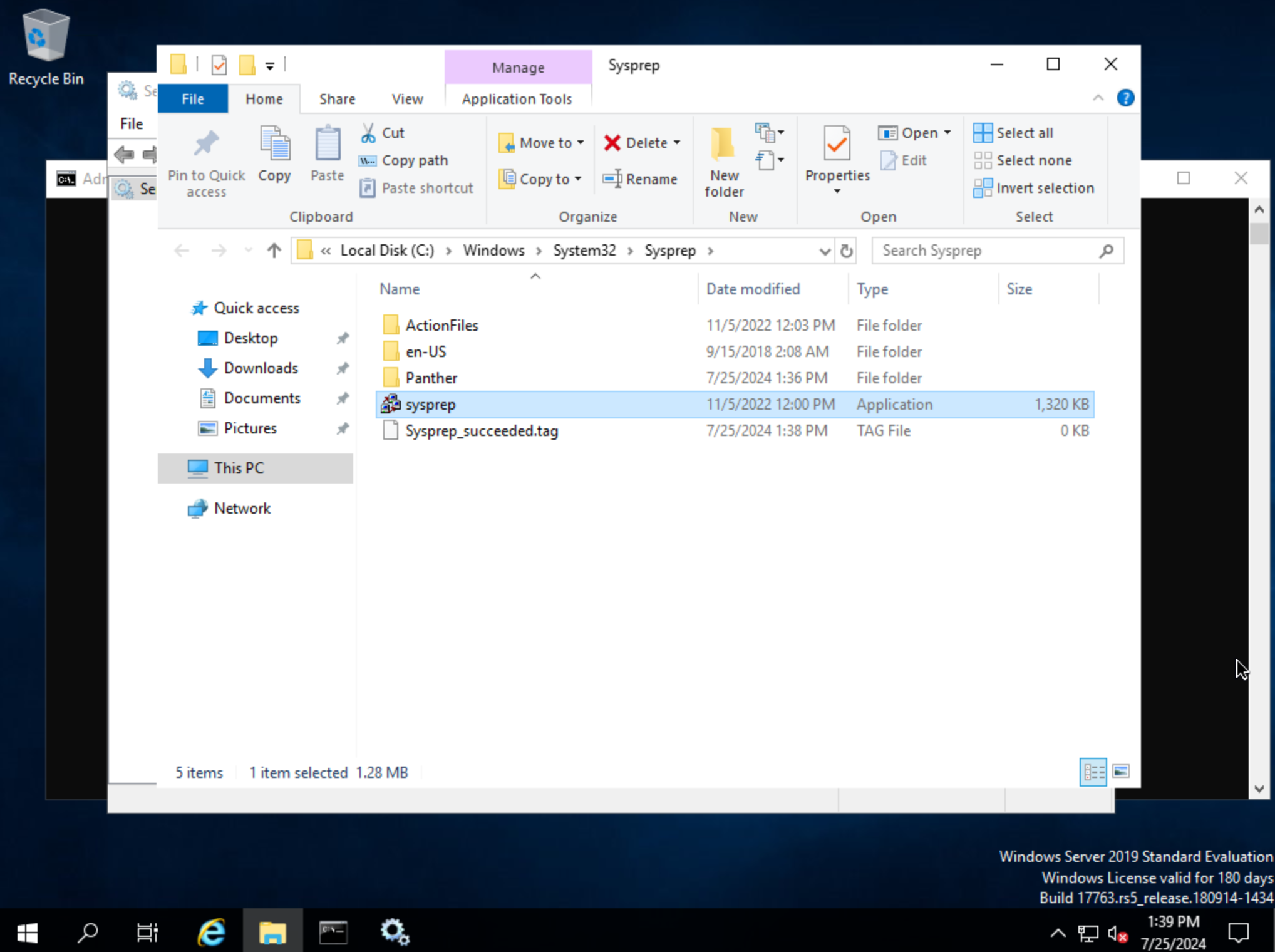 Next, back in Command Prompt, run winrm quickconfig to configure winrm. Within Services, ensure that winrm (Windows Remote Management) is set to automatic on startup. Right-click on the Start button and select Run. Enter “sysprep” and click OK. In the Windows Explorer window that appears, right-click on sysprep and click “Run as Administrator”. Under “Shutdown Options”, choose Quit and click OK. If this is set to shutdown, VM Essentials will simply restart the VM. Once this is completed, a new file Sysprep_succeeded.tag appears in Windows Explorer.